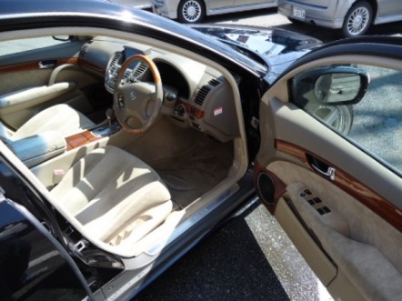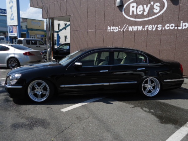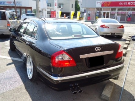 日産 CIMA 300G JIC車高調 IMPUL2本出マフラー レオンハルト19inc 段リムアルミ ワンオフダクトフェンダー INFINITYエンブレム