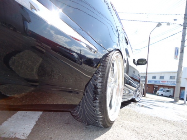 300G JIC車高調 IMPUL2本出マフラー レオンハルト19inc 段リムアルミ ワンオフダクトフェンダー INFINITYエンブレム |
