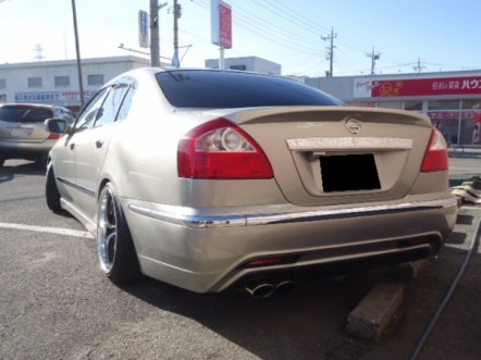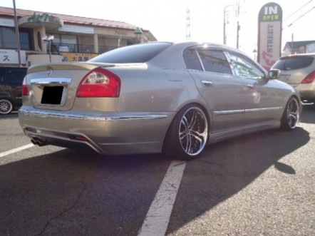 日産 CIMA 450XV macコンプリートVer プロジェクターフォグタイプⅡ バーディークラブフルタップ車高調 AMEシャレンXF-55 19inc 社外2本出しマフラー 地デジ搭載