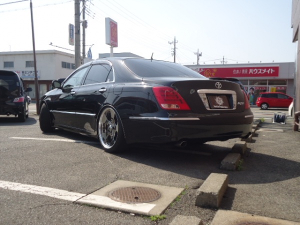 TOYOTA クラウンマジェスタ 4.3Cタイプ 黒本革・SR・ナビシステム 地デジ スーパースター20inc TOM’sフロントアンダーエアロ データシステムASC680エアサスKit ビルトインETC