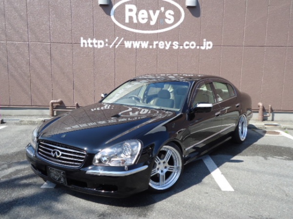 日産 CIMA 300G JIC車高調 IMPUL2本出マフラー レオンハルト19inc 段リムアルミ ワンオフダクトフェンダー INFINITYエンブレム